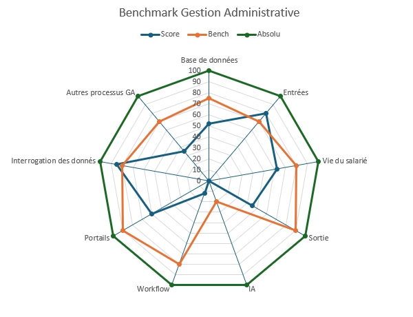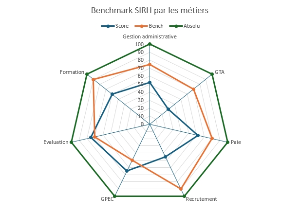 Nous avons donc développé un système d'étude rapide et précis du positionnement de vos équipes par rapport à ce qui est communément attendu sur la place d'un SIRH, que ce soit :